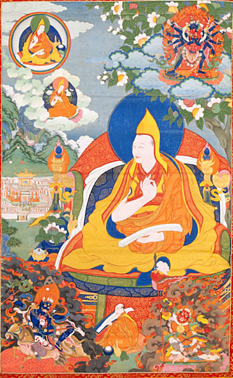 根敦嘉措唐卡,18世纪,西藏,布本,设色,通长140cm,宽73cm,画心纵72cm,横46cm。清宫旧藏。
