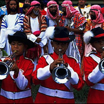 7) 新郎新娘面对面站立, 新郎替新娘揭开面纱, 交拜三鞠躬.