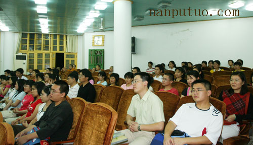 12日晚7时,日本学者木村宣彰校长于南普陀寺作《大谷大学的古代典籍与中国文化之研究》课题的讲座。参加者有南普陀寺传明法师、了法法师、法尊法师及闽院师生;厦门大学哲学系主任詹石窗教授,林观潮副教授、吴光辉教授(翻译)及厦大的学生。讲座由传明法师主持,林观潮教授翻译。