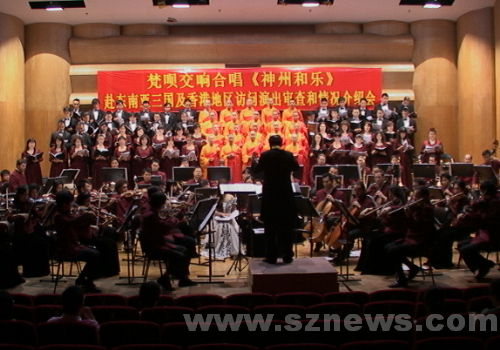 国内佛教史上首部梵呗交响乐《神州和乐》5月6日-25日将在新加坡、马来西亚、印度尼西亚、中国香港等地奏响盛世梵音5月2日下午,国家宗教事务局局长叶小文、深圳市委副书记李意珍等领导在深圳交响乐团排练厅对即将出访东亚三国的《神州和乐》节目进行了审查并对乐团出访成员进行了动员。