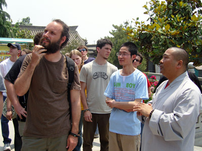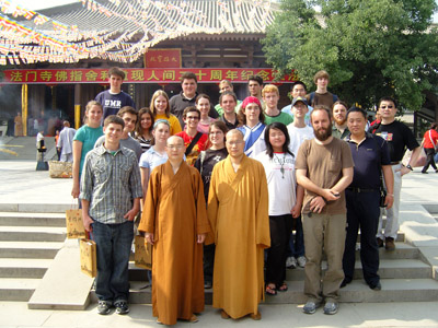 最后教务长送给他们每人一套大和尚讲的《感悟人生》DVD和法门寺简介。并跟他们谈了自己在美国学习几年的心得体会,并预祝他们在中国的学习生活愉快。法师说:“今天你们每个人多多少少都对佛法有了一定的了解。希望你们以后有机会能够多学习佛陀的智慧与慈悲,为加强中美友好关系乃至维护整个世界和平稳定发展多做贡献。”