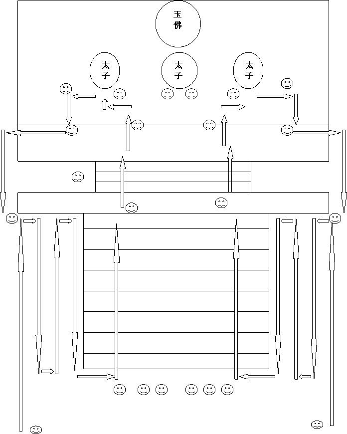 1、打板8点。(方丈至殿前,一同前去方丈楼迎请太子)