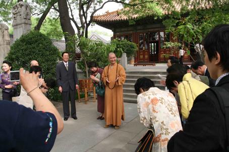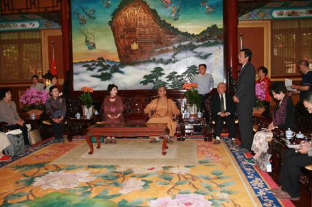 “今天5月7日正是中国黄金周期间,气候也很好。永濑会长带领贵会同仁来北京,增进两国及佛教的友谊,我们感到格外的亲切。