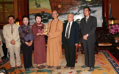 5月7日上午8:30,日本立正佼成会松江教会“日中友好和平使节团”一行25人在永濑晃子教会长的带领下来访中国佛教协会。先参观广济寺,然后学诚法师在大客厅接见了他们,出席接待的中方人员还有佛张琳副秘书长、李贺敏、佛教文化研究所杨曾文所长等