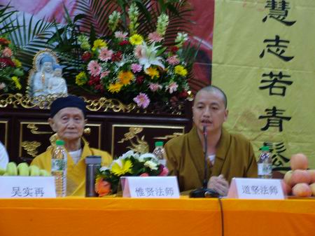 座谈会在道坚法师的主持下,于9点正式开始。首先由重庆市民宗委吴实再主任致词。吴主任表示,心月上人是受人尊重和爱戴的高僧,我们要学习上人的精神,并将之发扬下去,才是对上人最好的纪念。