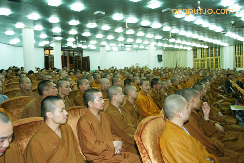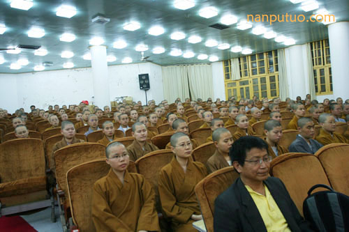 5月4日晚上7时许,南普陀寺礼请佛光山心定和尚演讲“生命的工程师”,有闽院法师,常住僧众、学僧,及居士约几百人聆听。