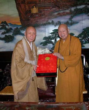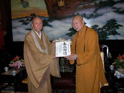 宾主相谈甚欢,则竹秀南长老还向一诚会长赠送了亲自题签的新著。