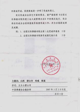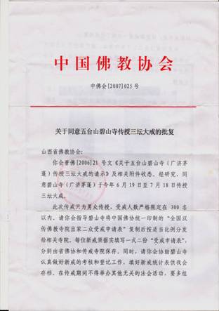2、所在寺院同意求戒证明(加盖寺院公章)