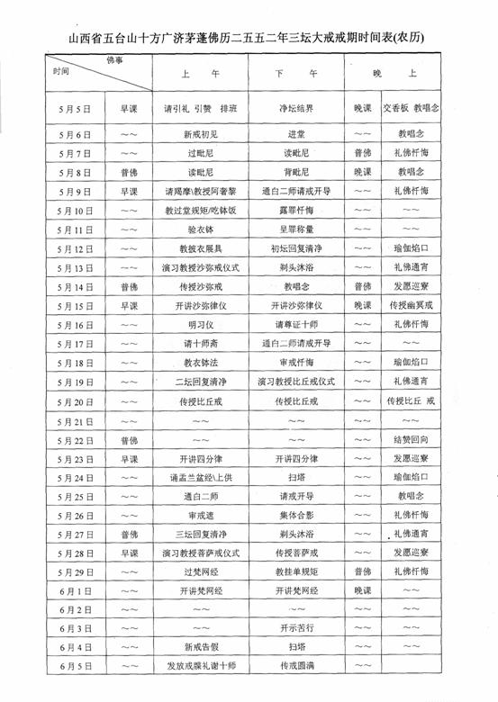 三、山西省五台山十方广济茅篷佛历二五五二年三坛大戒戒期时间表(农历)
