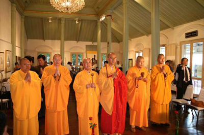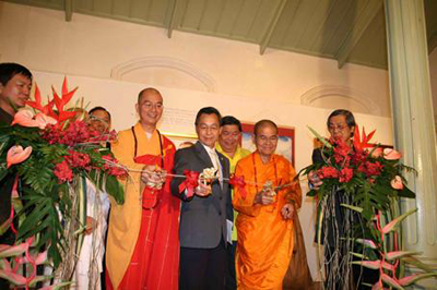 2007年5月24日下午5点(当地时间),泰国艺术大学隆重举行佛画世界”联展开幕式,中国佛教协会代表团团长学诚法师应邀与川立派先生、仁得长老为开幕式剪彩。