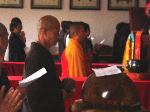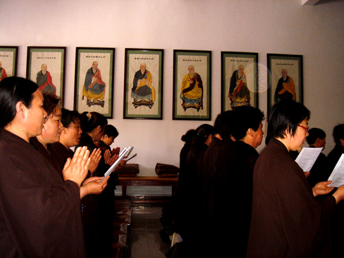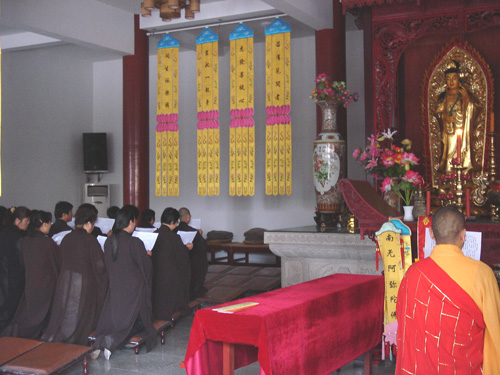 5月17日水岩寺 第二届精进佛七起七,大众在上圆下涛法师的带领下,精进绵密地专提着圣号.声声凝聚着对阿弥陀佛的向往,句句消融在清静的自性! 此次参加佛七的人数近七十人,大众都显得非常精进,而圆涛师父的开示,更是慈悲真切,句句都渗露着对学人的关怀和鼓励!!
