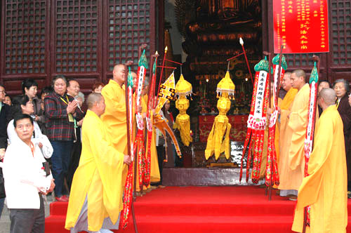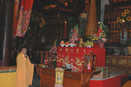 5月1日下午3点,常州天宁寺迎请中国佛教协会常务理事,江苏省佛教协会副会长兼秘书长,苏州报恩寺、报国寺、泰州光孝寺住持上弘下法法师在天宁寺大雄宝殿讲解佛法妙义。大殿内外信众云集,数千人聆听了开示。