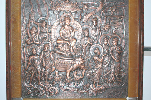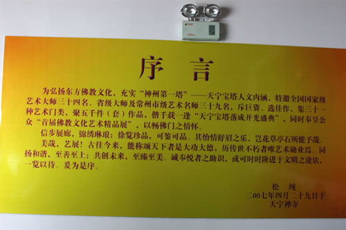 5月1日下午两点,“首届佛教文化艺术精品展”在天宁宝塔第一层吉祥大厅开幕,为期一个月。