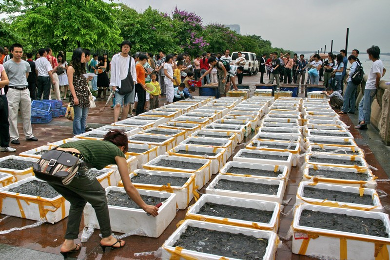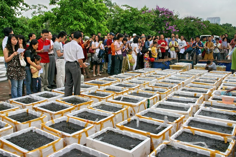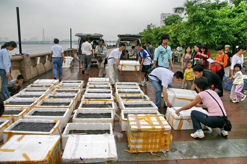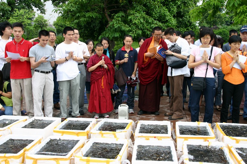 本次放生,有位师兄捐了一条金项链,让我们变卖了,把变卖的钱用于放生,后来我们去广州著名的荔湾广场,将项链变卖了1109元。