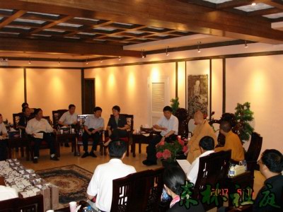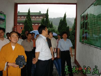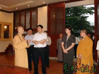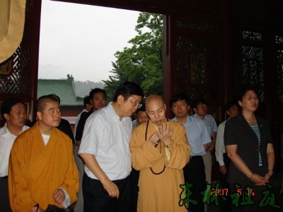 2007年6月14日下午,江西省九江市市委书记陈安众、九江市市长王萍等市领导为考察环庐山休闲文化到东林寺参观考察。