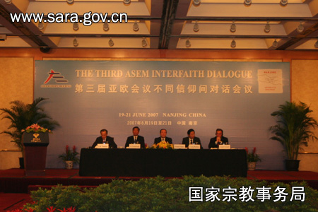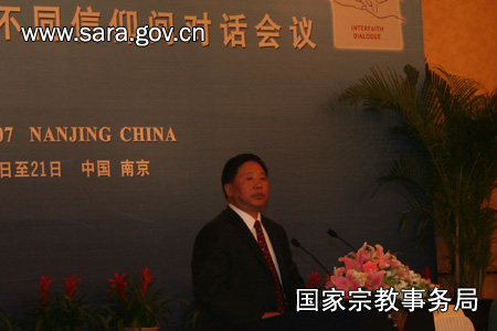 主席先生,各位嘉宾:在今天的全球化浪潮中,中华民族既认真发掘自己文化底蕴的精髓,又注意吸取全球人类的智慧。亚欧会议成员汇集东西方不同文明,涵盖世界主要宗教信仰。中国政府和宗教界都怀着喜悦和兴趣,关注在中国南京举办的这次会议,倾听来自不同国度、不同文明代表的重要意见。“不同文明之间的接触在过去常被证明是人类进步的里程碑。”(英国哲学家罗素)“要在距离遥远的民族间建设一座相互交流知识和技能的桥梁,最终走向一个新的和谐。”(德国哲学家莱布尼兹)我深信,亚欧会议的不同信仰间对话会议,有助于我们进行深入的接触,搭建交流的桥梁,迈向和谐的目标,实现“和而不同、美美与共”的愿景。