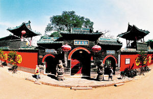 崇善寺的第二宝,就是那两套壁画临摹本。一套是《释迦世尊应化示迹图》,描绘了释迦牟尼成佛的故事;另一套是《善财童子五十三参图》,描绘了善财童子参拜诸佛学法的故事。这两套摹本,虽经500余年,但仍鲜艳如初,被人们称为“宝石画”。这些画为研究我国的绘画史等等,提供了宝贵的资料。