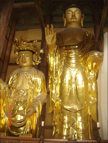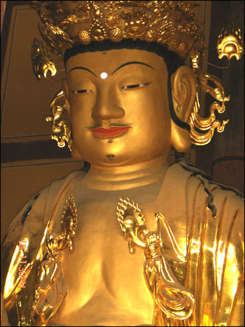 在韩国金山寺采访时发现,韩国的佛像、菩萨像有胡子(见图1,2)。这是中国佛像和印度佛像中未曾发现的。