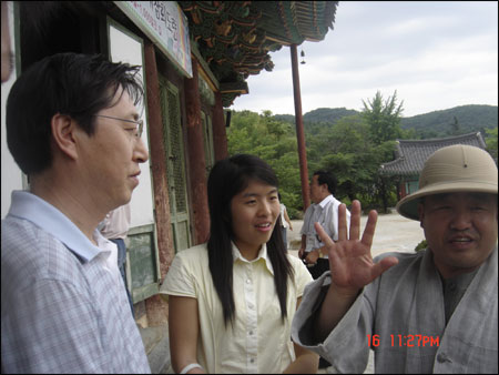 对此,韩国金山寺主持圆行先生(图3)解释说,韩国佛像最初也是没有胡子的,后来由于封建贵族都留有胡子,于是韩国的佛像、菩萨像慢慢都有了胡子。但对于韩国佛像何时开始出项胡子,圆行先生没有说明。
