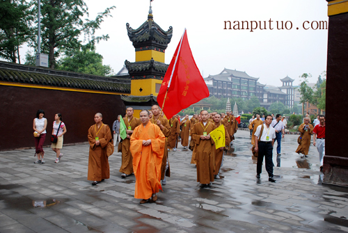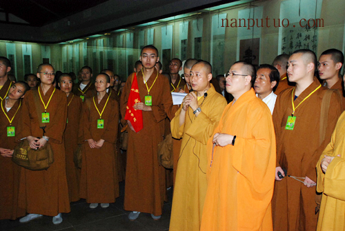 界象法师和全体学僧依序列队绕塔三匝,并高诵佛号,以示恭敬。照仁法师引领大众到寺中的文物精品馆参观,并一一予以介绍。馆藏文物丰富,有宝光寺镇寺三宝之一的“优昙花”,梁代的千佛碑,唐代的施衣功德碑,以及明代的文征明、唐寅,清代的竹禅、破山明,近代的张大千,徐悲鸿等书画大家的真迹,令众人流连忘返,叹为观止。