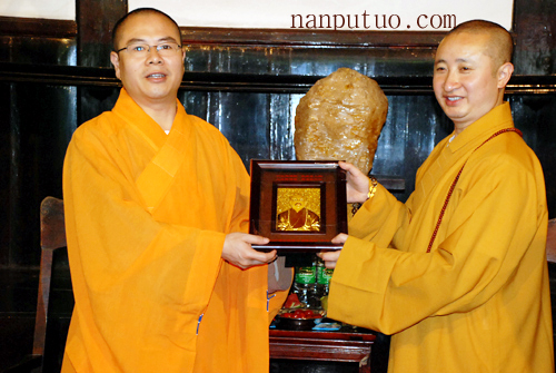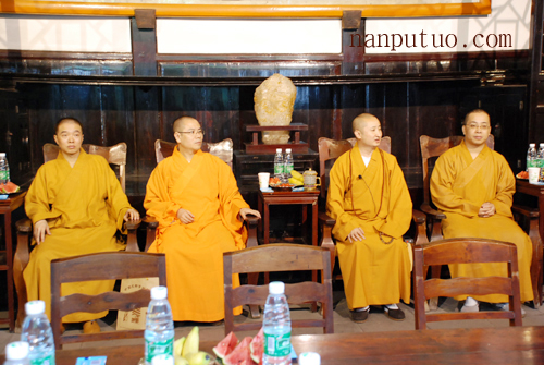 宝光寺方丈意寂大和尚在东方丈室迎候参学团,并向大家简单介绍了宝光寺。大和尚说:天下丛林饭似山,宝光寺是长江流域的四大丛林之一,有“要坐香到宝光”的说法。寺中有定期对居士举办佛学讲座和共修活动。并希望有缘的法师能一起共同发展这座“菩提家业,三宝道场”。参学团团长界象法师对意寂大和尚的盛情款待表示感谢,并赞叹,在四川佛教界中,历代出现了许多的高僧大德,对中国的佛教起了重大的影响。