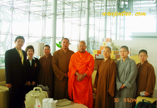 在机场和秘书长(校长秘书)、佛学研究院负责人帕窟巴兰长老合影