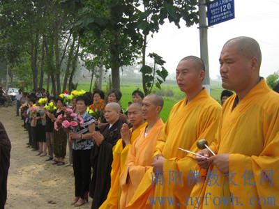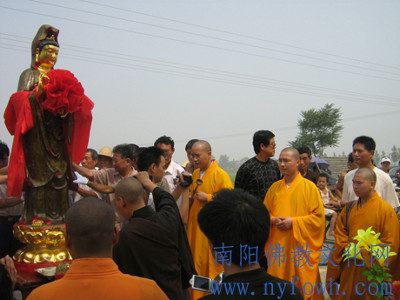2007年6月17日(农历五月初三)上午,在南阳佛教文化网金文英副站长的带领下,100多名居士乘坐12辆汽车,前往桐柏县平氏观音寺捐赠观音像,受到主持印川法师和桐柏上百名居士的欢迎。