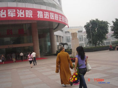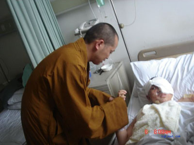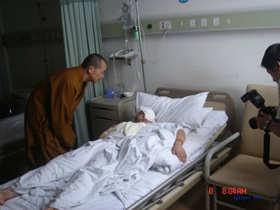 2007年6月25日8点,重庆华岩文教基金会理事长道坚法师带领基金会工作人员来到重庆西南医院看望了受到严重迫害,死里逃生的垫江15岁小女孩。
