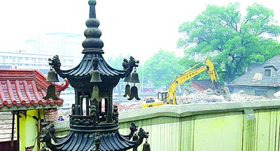 昨日上午,记者在现场看到,尽管周围是热火朝天的拆迁场面,龙华寺内依旧一片清静。寺院的智宏法师介绍,龙华寺始建于明成化二年。文革期间,寺庙大部分建筑和碑文被毁。现在的寺院是1994年重建的。