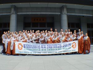 2007年5月28日,拥有三千多所寺庙与千万名信众,并以培养徒弟、译经和布教为宗旨的韩国最大佛教宗派──曹溪宗,为促进僧伽高等教育的国际合作和经验交流,由所属十四个僧伽大学等六十五位法师居士组成访问团,到法鼓山世界佛教教育园区参访,受到法鼓山首座惠敏法师、副住持果品法师、僧大副校长果镜法师以及教职学生们的热情迎接。