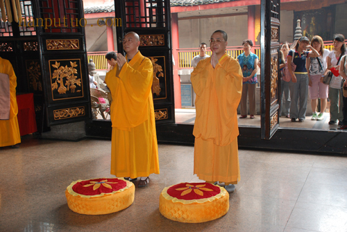 罗汉寺方丈智丰大和尚与参学团副团长达源法师共同诵经礼佛