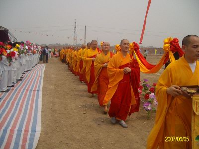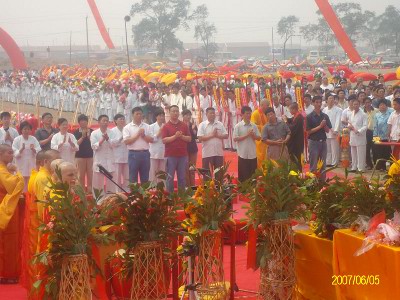 2007年6月5日,在和风徐徐地吹起,香云弥漫在四周的美好盛夏时节,天津静海大愿寺隆重举行了奠基洒净大法会。天津市佛协副会长、荐福观音寺住持妙贤法师主持庆典仪式。北京灵光寺住持常藏法师,西安草堂寺住持谛性法师,天津挂甲寺监院演龙法师,天津潮音寺住持悟开法师,天津东五台寺住持照正法师,天津市佛协副会长王剑非居士,市宗教局宗教三处农笔耕处长,静海县张现民副县长、静海县政协副主席卢风华先生等高僧大德、政府官员、社会人士和来自天津及周边省市的信众3000余人共同出席了法会。