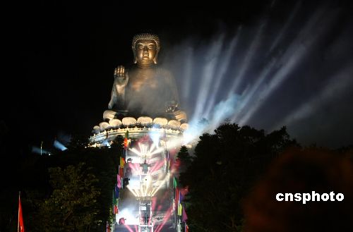 《佛光照耀香港﹑离岛区全民舞动庆祝回归十周年》活动二十三日晚在大屿山宝莲禅寺天坛大佛举行﹐108位高僧做祈福法会﹐数千民众参加﹐金龙和夜光龙舞动,焰火幻彩灯光辉映,一切皆象征香港的活力﹐回归的喜悦﹐佛光普照香港。