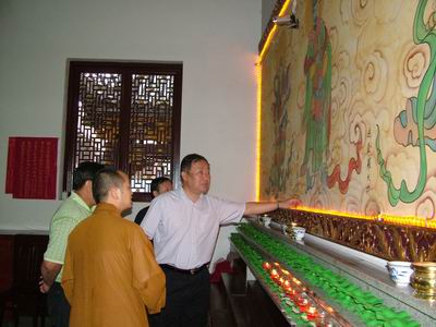 重庆佛教在线消息 2007年6月7日下午,由长寿区政协主席游智明带领的长寿区政协考察团在九龙坡区政协主席成建国等区政协领导的陪同内下参观华岩寺。
