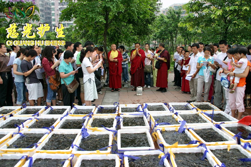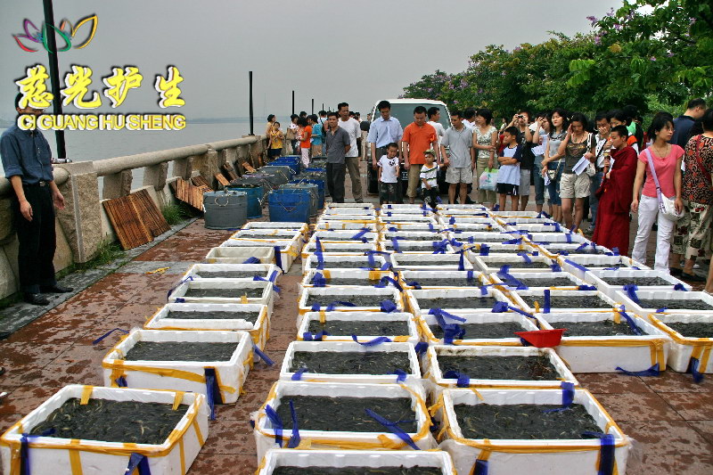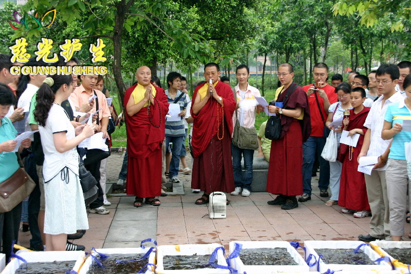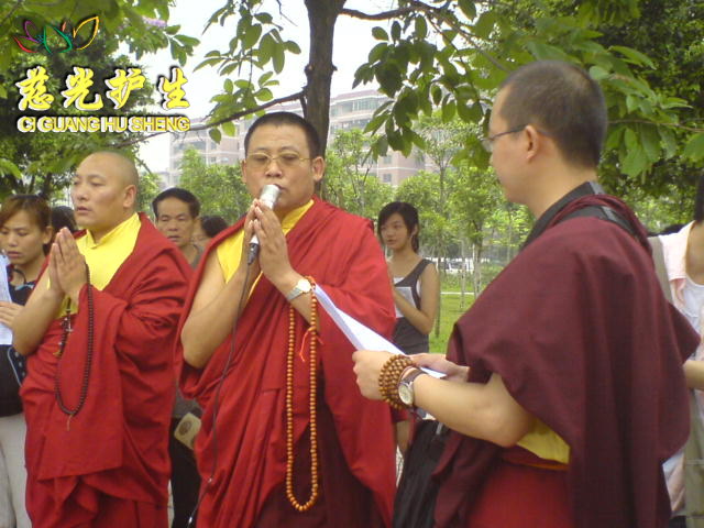 本次放生,恰好五明佛学院嘉样堪布路过广州,所以请来嘉样堪布主持本次放生,放生殊胜圆满。