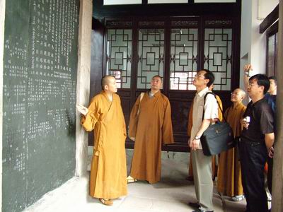 6月20日到21日,由中佛协副秘书长陈文尧、中国人民大学教授温金玉、《法音》编辑部主任卢浔、中国佛学院讲师正澄法师一行4人组成的佛教院校教材调研组到渝,在重庆市佛协副会长、重庆佛学院常务副院长、华岩寺方丈道坚法师的陪同下,参观华岩寺,考察佛学院,并与佛学院教师代表、学生代表及毕业生代表举行座谈会,就当前佛教界佛学院教材的使用、编写及师资和课程的安排等问题作了积极深入的交流和探讨。