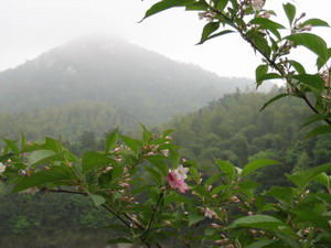 下山的小路还是蛮好走的,几个关键的岔路口很顺利就能辨别出来,没有走错路。两旁的映山红开得正旺,整片整片粉红色花瓣像被子一样把山坳和山头全部覆盖了,间或有些不知名的野花,一不小心就会让人住足观赏。阵阵松涛伴随山涧水声远远传来,夹杂些竹叶的摇曳声迷惑着人坐下来谈幽说玄;幽幽孤坟似乎在诉说着人生的苦难;零落的小野庙守护着山林的秩序,告诉众生一切皆是因果循环。我自认为定力不错,还是忍不住驻足在一簇映山红前,拆下一簇,美呼其名曰:“回去供佛啊!”。