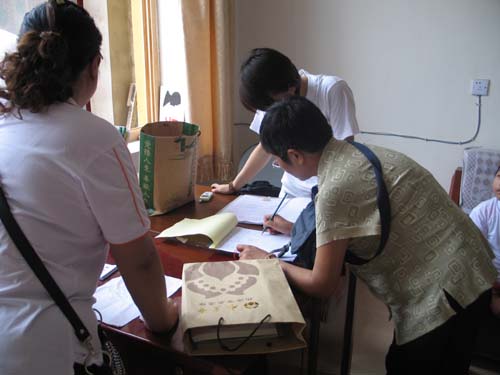参加夏令营的成员及家长到达后,寺院随即安排了住宿等相关事宜。然后带领大家在教室内做了参观。参观过程中,诸位小朋友在老师的带领下,齐诵《弟子规》庄严教室! 同时,家长们也完成了各项填表登记工作!