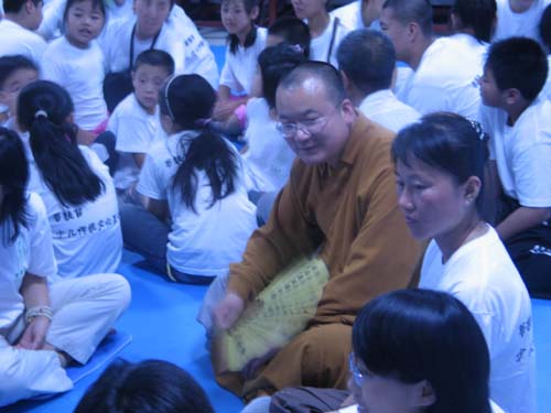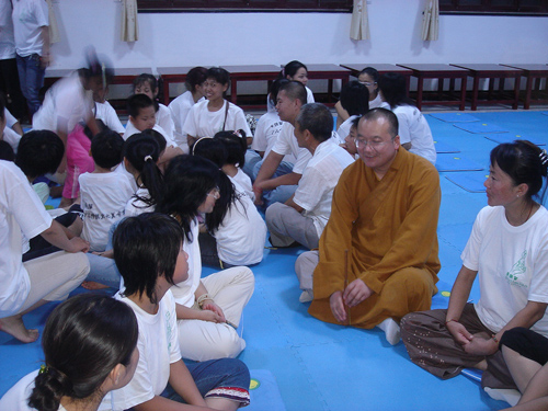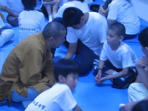 晚饭过后,在教室营员们参加了首次“夏令营成员见面会”。并且水岩寺三位法师慈悲莅临指导,并与小朋友们亲切交谈。水岩寺上存下海法师发表了重要讲话及开示。发言精炼而深稳,智慧而慈悲。法师所谈到的社会公众仁德危及,及国学复兴等话题,令在场所有的人都倍加关注。