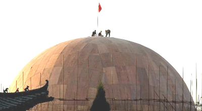 白马寺印度风格佛殿主体工程——圆形的佛塔封顶