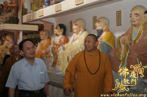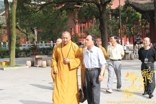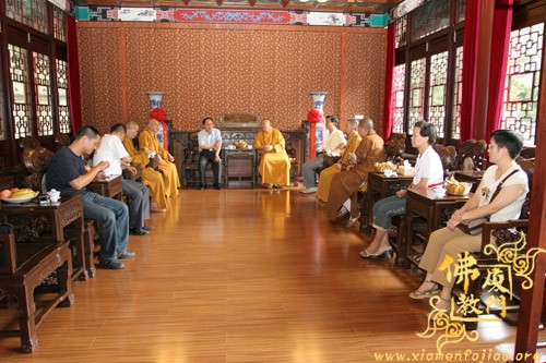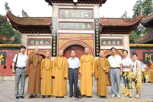 7月23日上午,厦门赴“遵义湘山寺山门落成暨改扩建工程竣工典礼”一行参观贵阳弘福寺。受到了贵阳市政协委员、弘福寺监院仁慈法师的热情接待。游览了解了寺庙的古迹,并在弘福寺客厅愉快座谈。座谈结束后仁慈法师给来访客人赠送了礼品,并合影留念。