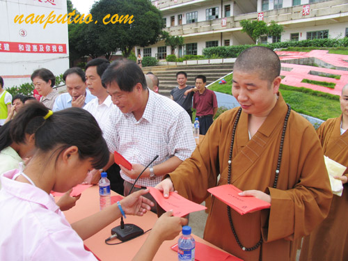 6月27日上午,受厦门南普陀寺慈善会会长圣辉大和尚的委托,南普陀寺方丈则悟大和尚、正兴法师、德鸣法师、通灵法师及义诊院医师,前往闽西龙岩上杭畲乡开展慈善活动。