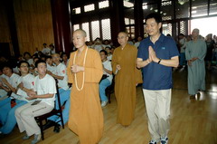 濮存昕是第一次来柏林禅寺,他很有感触地说:“昨天夜里两点以前,我赶到这里,在进禅寺山门的时候,有一种感动,我有一种久违的感觉。佛教的温暖有很长时间没有接触了,真的很感动。”