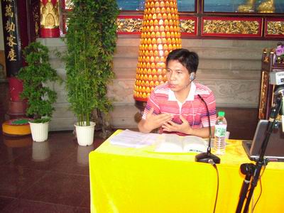 中国佛网消息 20007年7月29日,重庆华岩寺弘法楼一楼般若讲堂内,由耿宏慧居士为大众讲授《六祖坛经》之四。下午三点,讲经完毕,标志着华岩寺7月份周日讲经圆满结束。