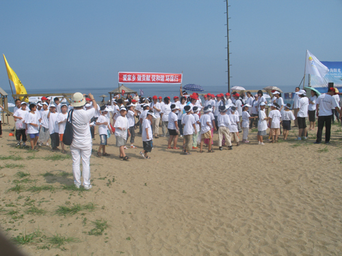 下午,孩子们和家长一起乘车来到了海边,进行"爱家乡,做贡献,促和谐"为主题的拣垃圾环保行活动.!