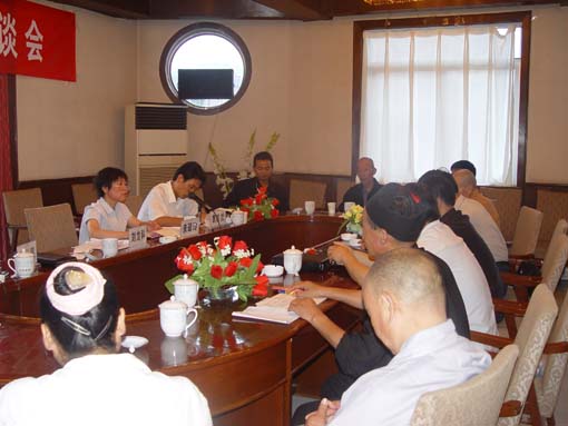 2007年8月9日9时, 陕西扶风县宗教人士座谈会在扶风县委招待所举行,会议内容分有三个部分,一、扶风县宗教局刘龙科局长做工作报告;二、与会宗教界人士发言;三、扶风县委统战部朱翠玲部长总结讲话。 座谈会由扶风县委统战部副部长袁高武主持。