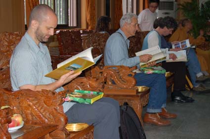 8月23日第二届国际泛逻辑会议研究学者一行参访法门寺,智超法师、法辉法师、慧慈法师进行了接待。学者一行14人专程到法门寺进行佛法与科学的交流,其中多数是国外专家学者。在两位学者翻译的帮助下,达成僧俗之间一种真切地交流,对国外的一些学者朋友来说,让他们了解到了佛学的精髓,认识到佛学与逻辑是紧密相连的,佛法能够促进逻辑学研究。