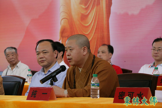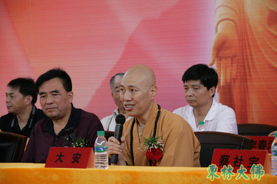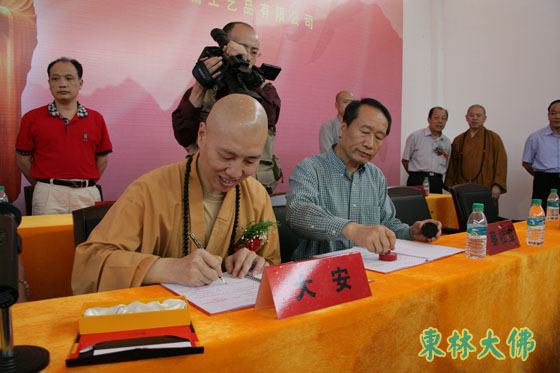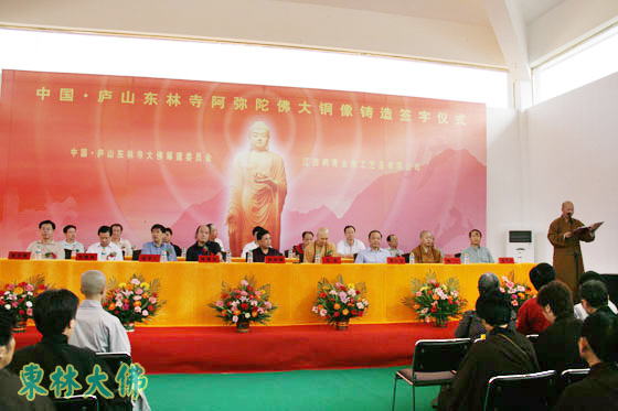 东林寺代主持大安法师代表东林大佛筹委会参加签约仪式,大安法师表示一定以高标准、高质量、高品位、高要求来完成阿弥陀大铜像的铸造。江西桐青金属工艺品有限公司董事长兼总经理陈镇波表示,一定要配合东林寺以严格认真的态度进行大铜像的铸造,提高铸造与安装技术,力争铸造出一尊时代的精品,促进国内大佛铸造水准的提升。
