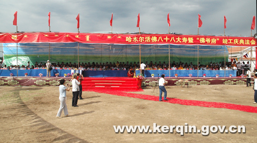 8月29日,中国佛教协会常务理事、河北省承德市大佛寺主持、阿旗罕庙哈木尔活佛88岁寿诞暨“佛爷府”竣工庆典法会在阿旗罕庙举行。内蒙古佛教协会主席查干格根,赤峰市佛教协会主席塔日吉德活佛,赤峰市市长徐国元,市委常委、统战部部长刘万华,市政协副主席李雪波,市民委主任阿希达,市统战部副部长王宪民,市民委副主任刘树田和我旗党政领导王国江、王铁命、鞠喜玲、黄彦峰、巴图吉日嘎拉、张吉信、郭艳秋、乌日图、吉日嘎拉、满都拉、呼和巴拉以及旗直有关部门负责人,各苏木乡镇主要负责人出席了庆典法会。承德市副市长于素伟,政协副主席、统战部部长姚华等一行前来祝贺。哈木尔活佛弟子以及社会各界人士参加了竣工庆典法会。全国政协常委、副秘书长、民革中央副主席、承德市原副市长齐续春先生发来贺电表示祝贺。庆典由旗政协副主席满都拉主持。会上,哈木尔活佛弟子、大连市锋华生物营养有限责任公司董事长兼抚顺市泰和洗煤有限公司董事长湛大军致欢迎词。副旗长吉日嘎拉致贺词,他代表旗几大班子,向本次庆典活动的举行表示热烈祝贺,向参加庆典活动的旗内外各级领导及社会各界朋友表示热烈欢迎,向长期以来关心阿旗宗教事业并大力支持罕庙建设的各级领导、各有关单位和为拯救民族宗教文化遗产、大力援助寺庙修缮的各界人士、广大信教弟子表示衷心感谢。刘万华、姚华分别致词。活佛弟子代表哈木尔活佛为前来参加庆典活动的各级领导、来宾、广大群众念经祈福。与会人员还观赏了庆典活动的各项文艺表演和体育比赛。本次活动由哈木尔活佛弟子湛大军主办。罕庙是阿旗地区流传佛教24所寺庙中,地位最高、规模最大、历史最悠久的寺庙,也是内蒙古东部地区非常重要的一个佛教圣地。哈木尔活佛是罕庙几位著名的活佛之一,是一位博学多才、德高望众、颇有影响的活佛。上世纪二十年代初,他出生于阿鲁科尔沁旗,八岁到罕庙学藏经,青年时期曾赴青海省塔尔寺深造佛学12年,1986年应邀任河北省承德市普宁寺主持。哈木尔活佛为人慈悲和善,学识渊博,忠于信仰,拥护党的领导,热爱社会主义。他带领广大信教群众,为修缮寺庙,弘扬宗教文化,继承和保护民族文化遗产付出了心血。1987年以来,他亲自主持恢复了阿旗根培庙和罕庙两所寺庙的宗教活动。