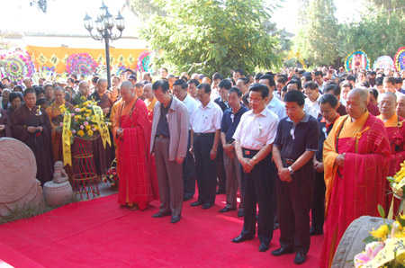参加追思法会的省、市、区领导及诸山长老、四众弟子默哀